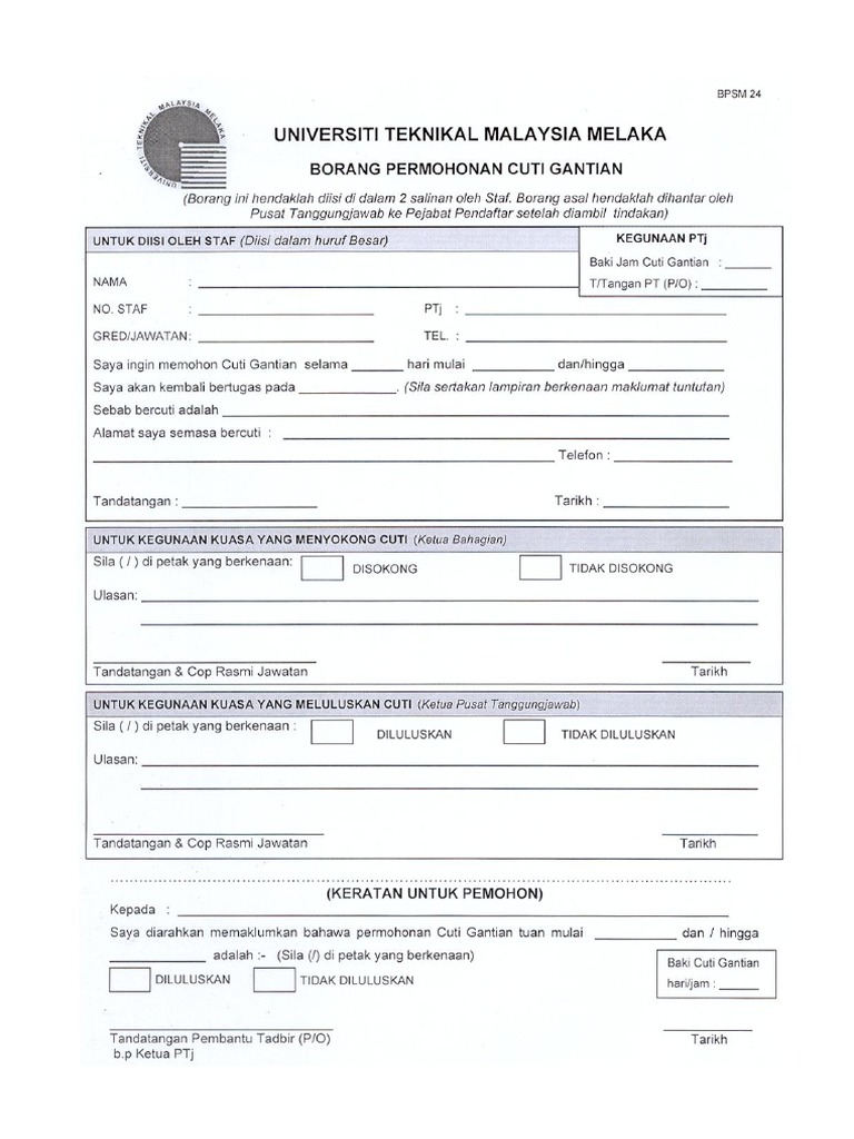 Borang Permohonan Cuti Gantian Pdf Pdf